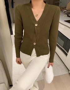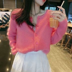 韩版纯色毛衣开衫外套2021秋冬新款复古V领针织衫...