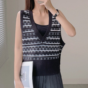 哥文2021夏季新款网纱披肩无袖针织衫女修身薄款冰...