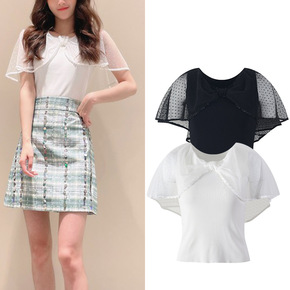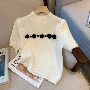 夏季新款时尚外穿显瘦针织衫韩版别致木耳边短袖T恤纯...
