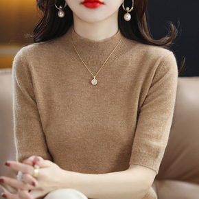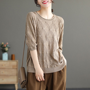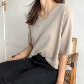 夏装新款冰丝针织衫女薄款夏 领外穿宽松打底半袖五分...