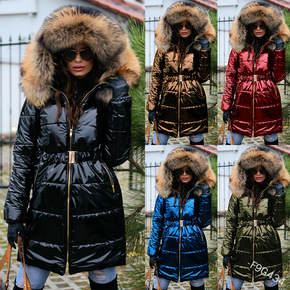 欧美大衣冬新款羽绒棉服女长款过膝大毛领韩版修身显瘦...