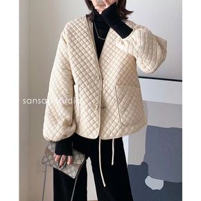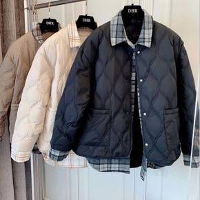 2021欧洲站新款时尚初冬菱形格宽松版小个子轻薄款...