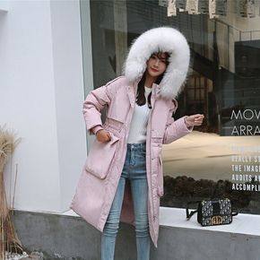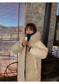 冬季女式中长款羽绒服韩版修身大毛领长袖羽绒棉服厂家...
