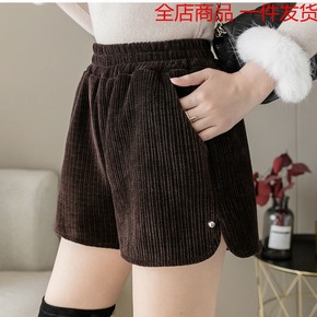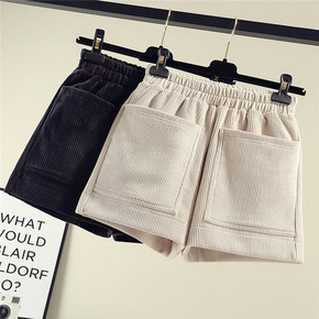 秋上新大码灯芯绒短裤女字型显瘦胖腿粗秋冬高腰休闲阔...