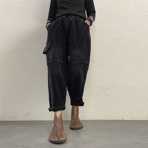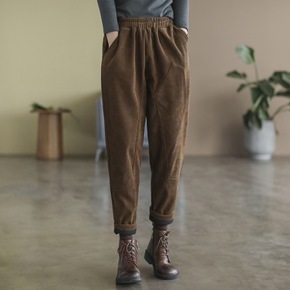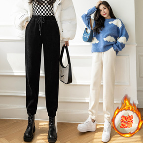 2022秋冬新款灯芯绒加厚裤子女士哈伦裤松紧腰显瘦...