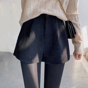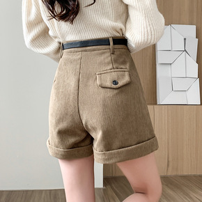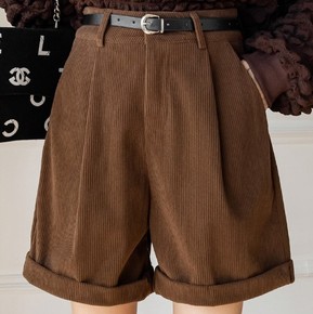 实拍灯芯绒短裤女2022秋冬新款时尚简约短裤阔腿裤...