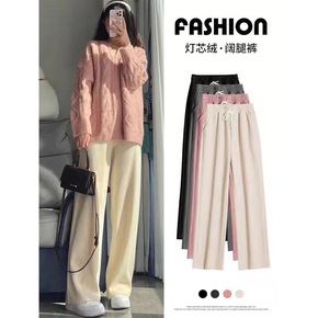 实拍欧绒棉阔腿裤女2022年秋冬高腰垂感直筒条绒百...