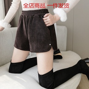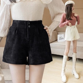 复古灯芯绒短裤女秋冬高腰外穿字阔腿宽松显瘦韩版休闲...