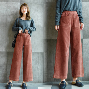 2021新款灯芯绒阔腿裤女秋冬高腰垂感宽松休闲直筒...
