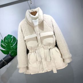 羊羔毛拼接棉服外套2021冬装韩版宽松系带收腰面包...