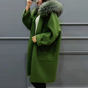 跨境欧美秋冬女士中长款毛呢外套时尚英伦风保暖纯色宽...