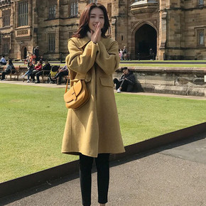 2021秋冬季新款韩版宽松毛呢外套女中长款流行咖色...