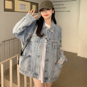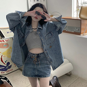 美潮复古牛仔外套女装宽松bf牛仔衣春季秋2022新...