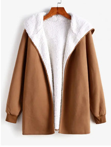 欧美秋冬时尚开衫毛绒外套 复合面料保暖女中长款连帽...