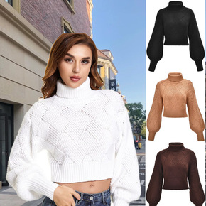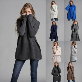 跨境秋冬季亚马逊爆款针织衫 纯色大码OL通勤高领毛...