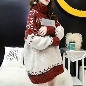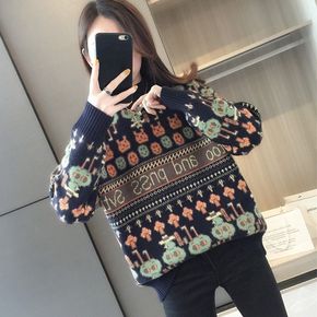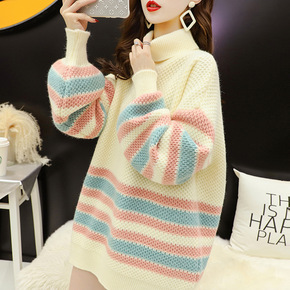 2021新款秋冬慵懒卡通洋气宽松半高领毛衣女针织衫...