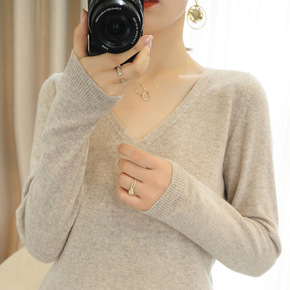 羊绒衫女100纯色羊毛V领毛衣套头打底百搭新款修身...