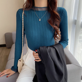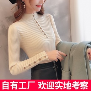 加厚包芯纱韩版半高领针织衫女修身针织毛衣女套头打底...