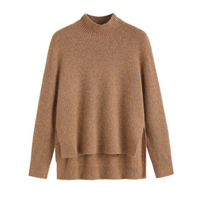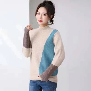 羊毛混纺2022春季新款女士韩版半高领宽松套头纯色...