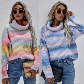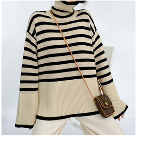 2021秋冬 新款针织衫欧美跨境女装亚马逊粗线高领...