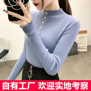实拍包芯纱半高领针织衫女外穿修身长袖套头毛衣内搭上...
