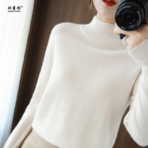 秋冬上衣新款半高领复古毛衣女加厚包芯纱纯色修身长袖...