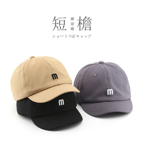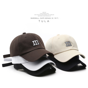帽子 M字母刺绣鸭舌帽男百搭弯檐棉软顶遮阳帽时尚简...