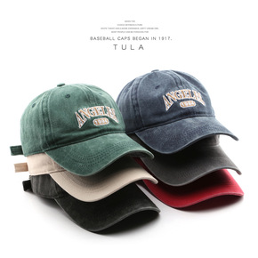棒球帽女复古户外字母做旧男士帽子时尚简约弯檐春夏季...