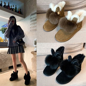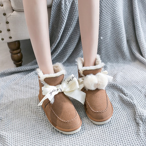 凯琳三代雪地靴女皮毛一体米色蝴蝶结毛球短筒保暖加绒...