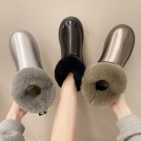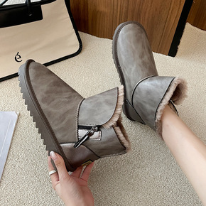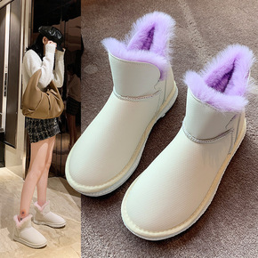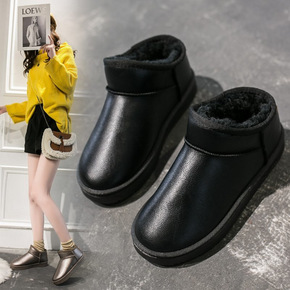 冬季短筒雪地靴女2021新款女鞋保暖雪地棉平底牛皮...
