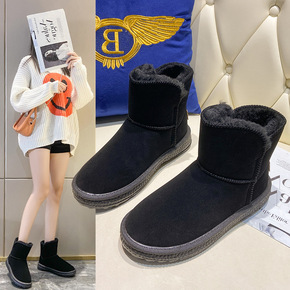 雪地靴女2021冬季圆头韩版新款时尚加绒加厚平底短...