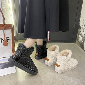休闲棉鞋2021冬季新款韩版女加绒雪地靴平跟保暖短...