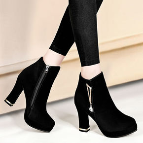 现货马丁靴女2021欧美外贸新款粗跟防水台高跟女靴...