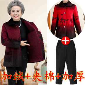 中老年秋外套女奶奶装加绒加厚套装60-70岁妈妈冬...