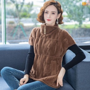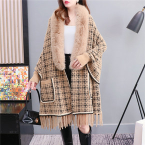 仿水貂绒2021斗篷披风女外套小香风秋冬新款外搭时...