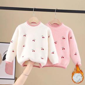 女童毛衣2021秋冬新款水貂绒加绒加厚儿童针织衫童...
