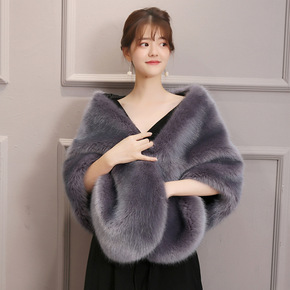婚纱披肩女秋冬狐狸毛皮草斗篷外套加厚结婚礼服旗袍外...