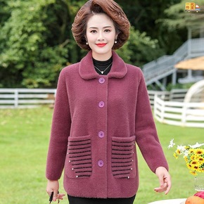 妈妈秋装格子外套小个子短款中年女装时尚卫衣水貂绒上...