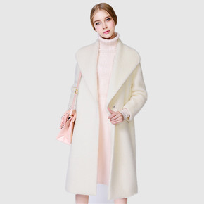糖力欧美白色羊绒大衣女中长款过膝宽松毛呢加厚毛茸茸...