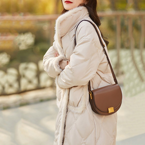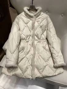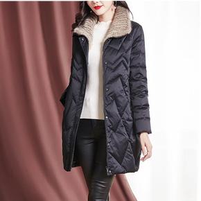 2021秋冬网红水貂毛拼接轻薄羽绒服女菱形格立领白...
