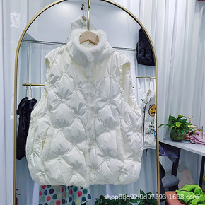 2021冬新款白鸭绒立领马甲羽绒服女轻薄欧货水貂绒...