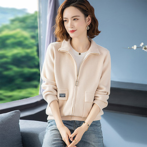 圆领水貂绒毛衣外套女202春秋新款外穿上衣外搭小香...