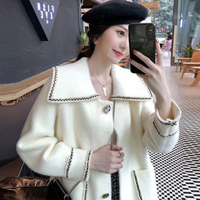 韩版短款小香风外套女2022秋冬新款仿水貂绒开衫女...
