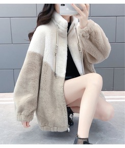 颗粒羊羔毛皮毛一体外套女2022年春季新款秋冬撞色...