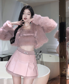 狐狸毛皮草毛绒外套女装短款流苏小香风粉色加厚上衣2...