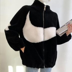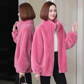 2021新秋冬加厚颗粒羊剪绒立领拉链羊毛大衣女羊羔...