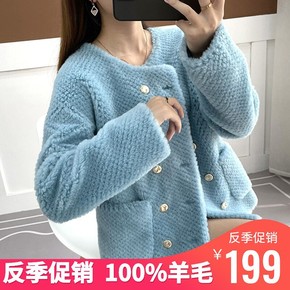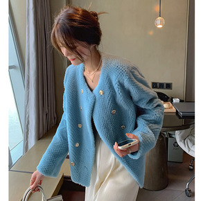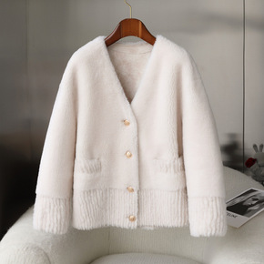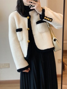 2022秋冬新款全羊毛颗粒小香羊剪绒短款皮草女羊羔...
