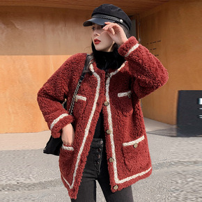小香名媛风羊羔毛外套女冬季皮毛一体羊羔绒加厚加绒机...