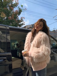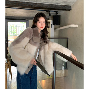 2021气质通勤减龄甜美拼接毛茸茸外套时尚韩版毛皮...