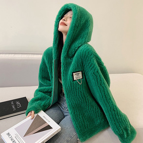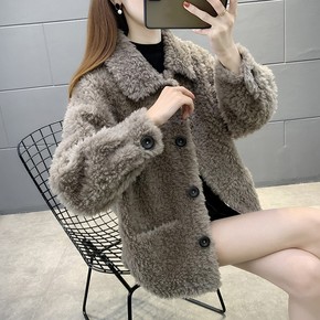 2022秋冬新款羊毛颗粒羊剪绒大衣女中长款皮草外套...